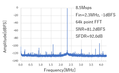 Here are the measurement results for AC characteristics (SNR/SFDR).