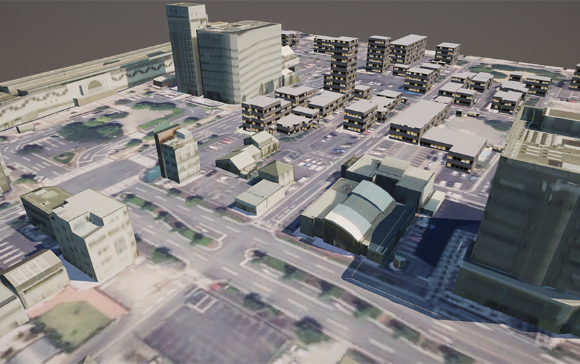 屋外空間の3DCGを作成する際に、当社ではオープンデータ等で実測結果を活用しています。シミュレーションや可視化の目的によってはそのデータの精度が不十分だったり、これから現地に設備を設置しようとしている場合に、そもそも実測ができなかったりすることがあります。そのようなケースでは、マニュアルで3DCGを制作することがあります。