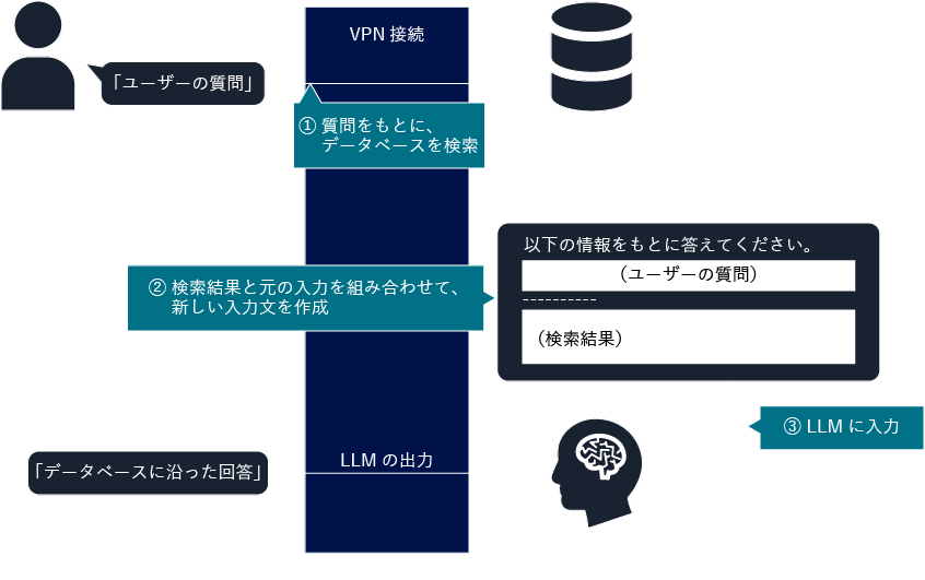 LLM のチューニング手法の一つに、検索拡張生成(Retrieval-Augmented Generation:RAG)があります。RAG は、入力文と関連するドキュメントを事前に検索し、それらを入力情報として LLM に与えることで出力精度を高める手法です。